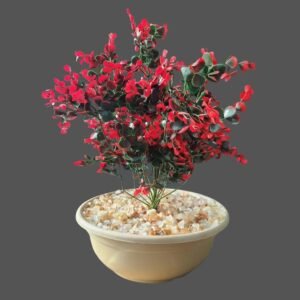 بوت زرع دائري أحمر مع زهور حمراء
